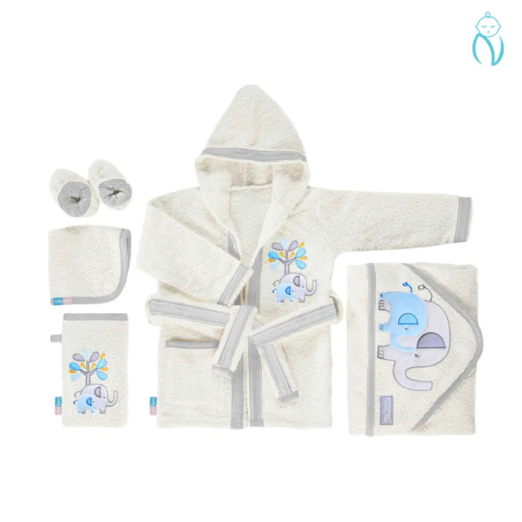 شامل تن پوش ، حوله کلاه دار ، پاپوش ، حوله صورت و لیف هست